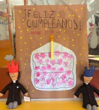 Ayer, en nuestro colegio, conmemoramos esta fecha tan especial de múltiples maneras. Los alumnos realizaron dibujos y estrellas decorativas, que después colocamos en un muro conmemorativo lleno de color y mensajes de cariño. Además, todos disfrutamos de piruletas y, en un ambiente festivo, cantamos juntos el “cumpleaños feliz” al Beato Padre Zegrí.